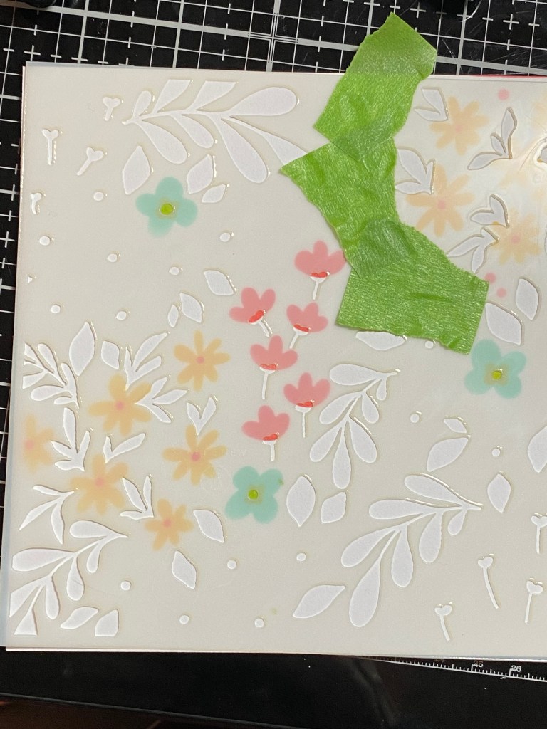 After finishing the “background”, and not spending any time on the larger flowers that would be covered, I printed two more designs with the BetterPress System on watercolor cardstock. After coloring, I decided to just layer the two larger flowers, as those were the only ones that I really needed to cover up on the background, due to the extra impressions from mirroring the design.