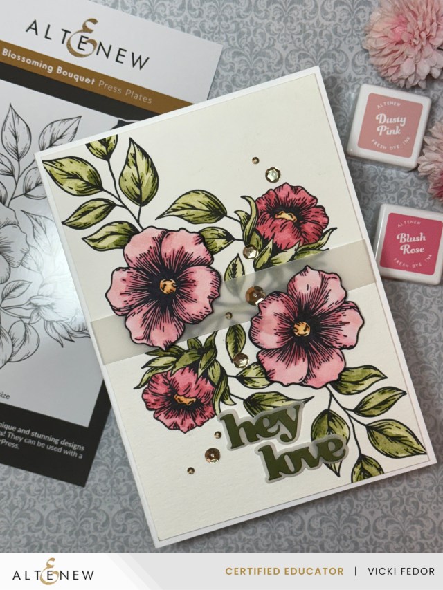 Altenew products used: Altenew Statement Flowers Stamp Set Altenew Sentiment Strips 3 Stamp Set Altenew Crisp Dye Ink Cubes – Summer Afternoon, Green Fields Altenew Fresh Dye Ink Cubes – Red Sunset