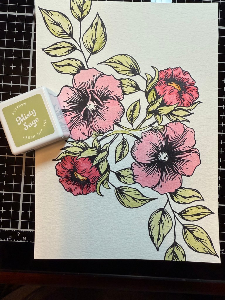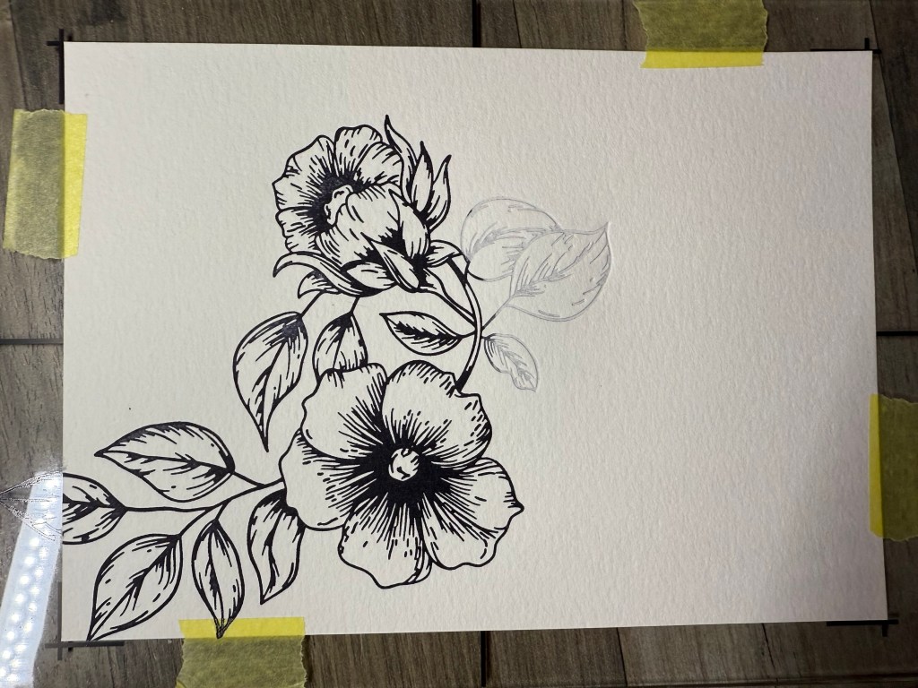 That was the hard part, and the most work for this card. Next, you just need to choose a medium to color your flowers and leaves, and you’re almost done!