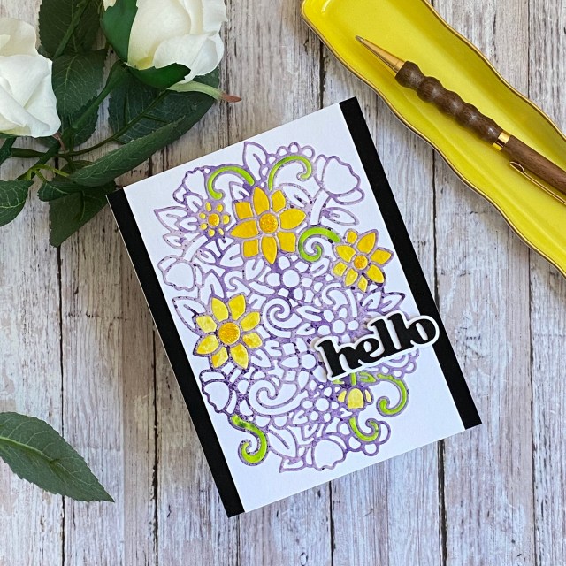 I used the Lapis Lazuli Crisp Dye mini ink cube set to blend an ombre effect onto the Dotted Waves panel, using the Dotted Waves Stencil. These are probably my favorite blues. When I began focusing on Altenew products and techniques, I purchased the inks in the mini cube sets. Now I know which colors I always reach for, so moving forward, I know which full size ink pads I will begin my collection with.