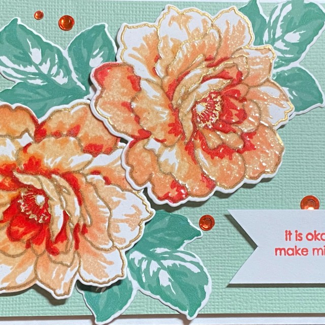 My final card for this challenge is an Anniversary themed card. I used techniques and inspiration from both the Color Your Day and Beautiful Details classes. I was looking through my other dies and stamps, and came across this fishing pole, and the sentiment “You’re the best catch of all”. I thought it would go together great with the rowboat. Wouldn’t it be cute if the fishing pole had caught a heart? That gave me the idea to use red for the heart as well as the color of the rowboat (Heart Beat and Vineyard Berry from the Tea Party ink cube set). I wanted to have a different background than the Dotted Waves. I found this Altenew Patterned Play Diamonds stamp. In one of the classes, the instructor suggested to look at your patterned stamps from different perspectives. Turn it sideways, or just use a portion of it. Stamp or stencil at an angle, not straight up and down. I tried this with the Patterned Play Diamonds stamp, and to me it looked more like a fish net than diamonds, so I thought it would be perfect for this card. I used inspiration from the several different classes that focused on colors. Red and teal would be part of a triad on the color wheel with yellow, but I decided to try red, blue, teal, black, white, and a touch of silver on the fishing pole. I used three of the Sweet Dreams Fresh Dye ink mini cube set for the background – Dew Drops, Aqualicious, and Teal Cave. I pressed (smooshed) the cube on my craft mat, spritzed with water, and picked it up with my watercolor cardstock. I used several layers of colors, drying in between. I wanted to add some spatters, so I used an Altenew Watercolor Marker in Dusk. After I got the background finished, I decided the blue seats in the rowboat were distracting, so I cut another set and colored them with Teal Cave ink. I like the harmony of this card better, sticking with just the red and teal colors. The theme song from the old TV show “Love Boat” popped into my head, so I added some tiny letters from the Sizzix Specimen set to spell “LOVE” on my boat. More Beautiful Details that make a nice card into a special card!