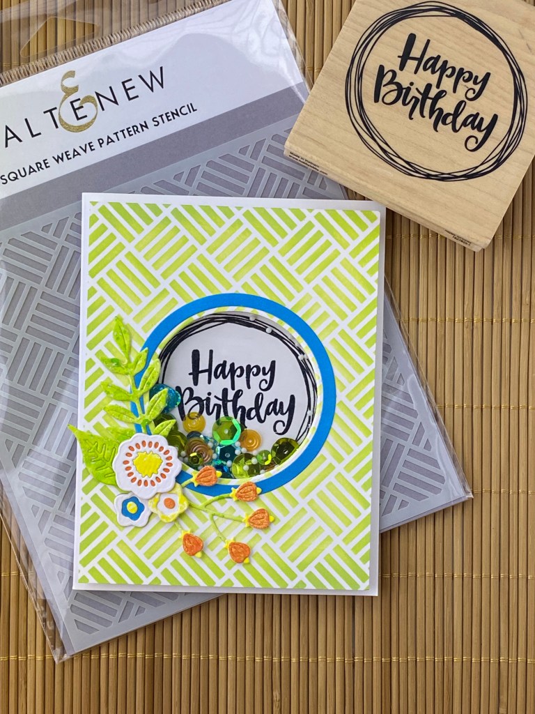 I used a piece of watercolor paper, spritzed it lightly with water on both sides, and ran it through the embossing folder first. Then I used the mica sprays, randomly spritzing 2 squirts of each of the lighter colors, and 3 squirts of the darker Juniper Berry color. To get the colors to blend, I spritzed lightly with water again. Then I just walked away! I couldn’t believe how beautiful it was when I returned and it was mostly dry! I couldn’t have planned it any better if I tried! The raised swirly bits and snowflakes seemed to hold a darker concentration of the color, and really stood out beautifully. I had thought that I would have to add some ink on top for definition, but honestly didn’t want to do anything more and end up messing it up! I finished drying it completely with my heat tool, but you could also just wait and let it air dry.
